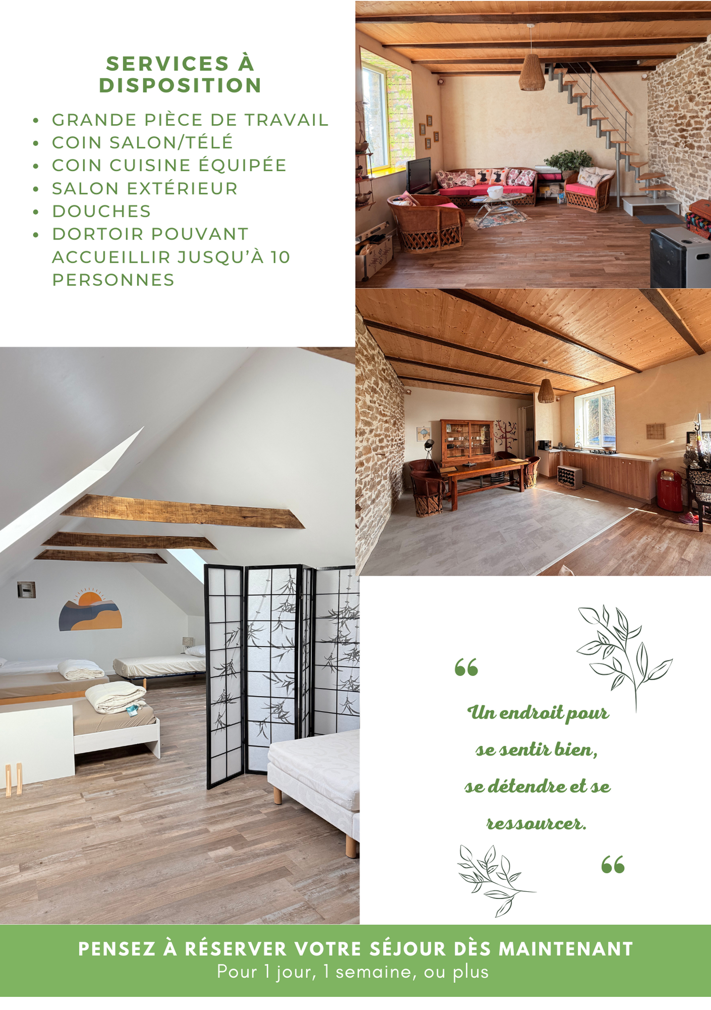 Possibilité de profiter du lieu avant et après le stage.