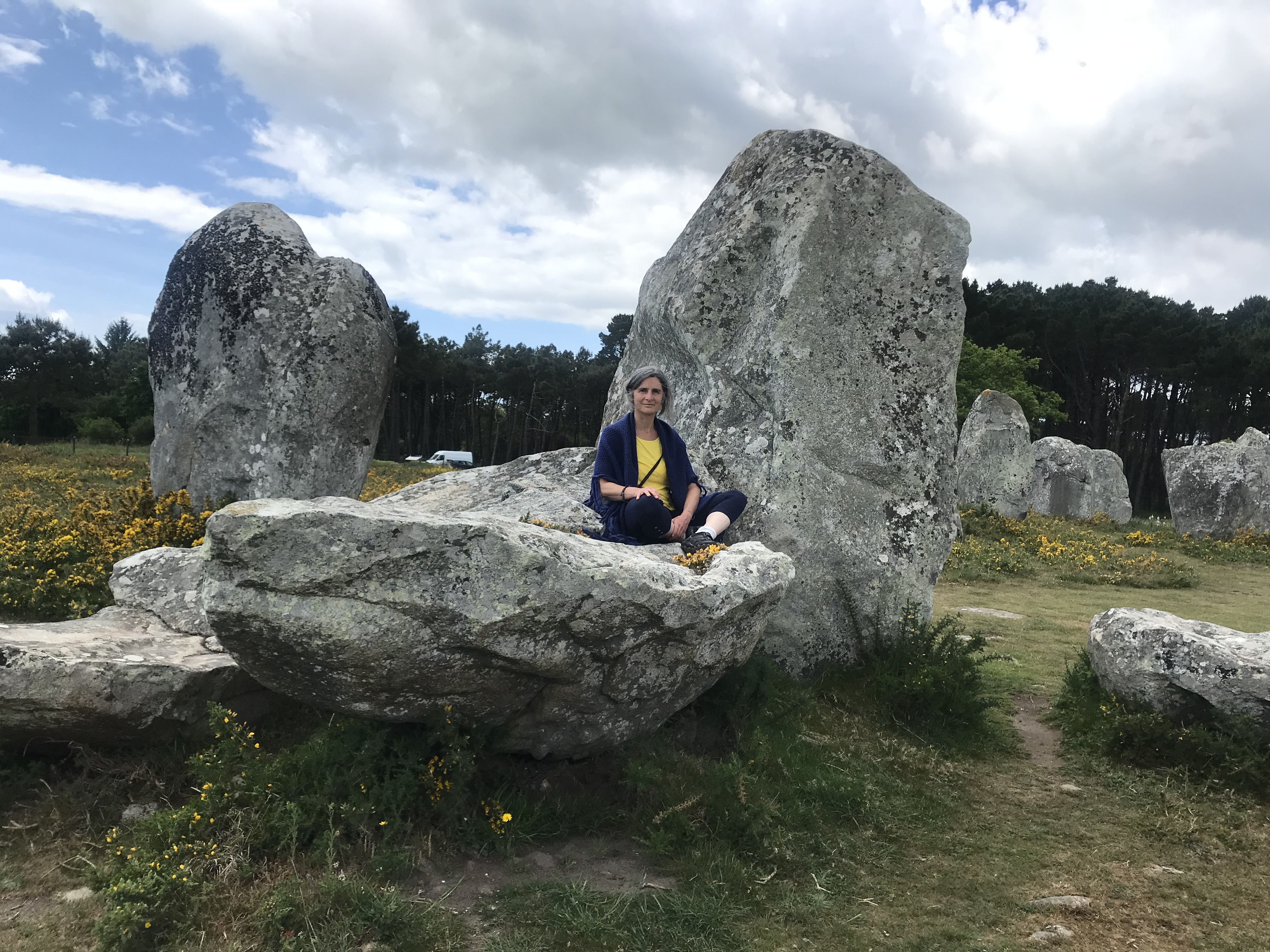…entre Yin, Danses Du Dragon et Ashtanga, si près du bleu, du sable de la Grande Plage ou des menhirs de Carnac, si près d’un chevreuil esseulé égaré dans le vert de Coat Birriguy, de ses chevrettes naines, de ses moutonnes sauvageonnes, ça picore, très très près de la nature, si près de son silence…